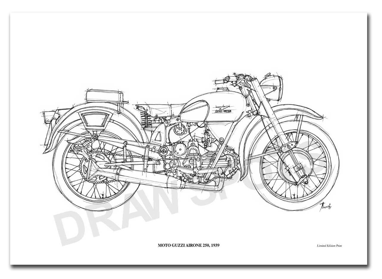 MOTO GUZZI AIRONE 250 1939 -Original Handmade Drawing Print, 11.5x16 in. (29x41 cm), Limited Edition print, cool gift, Price 42.00 USD (Listed on: September 29, 2014 at 11:29AM)