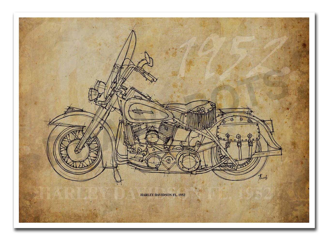 HARLEY DAVIDSON FL 1952, Based on my Original Handmade Drawing, Art Print 11.5x16in, Price 42.00 USD (Listed on: January 27, 2015 at 04:16PM)