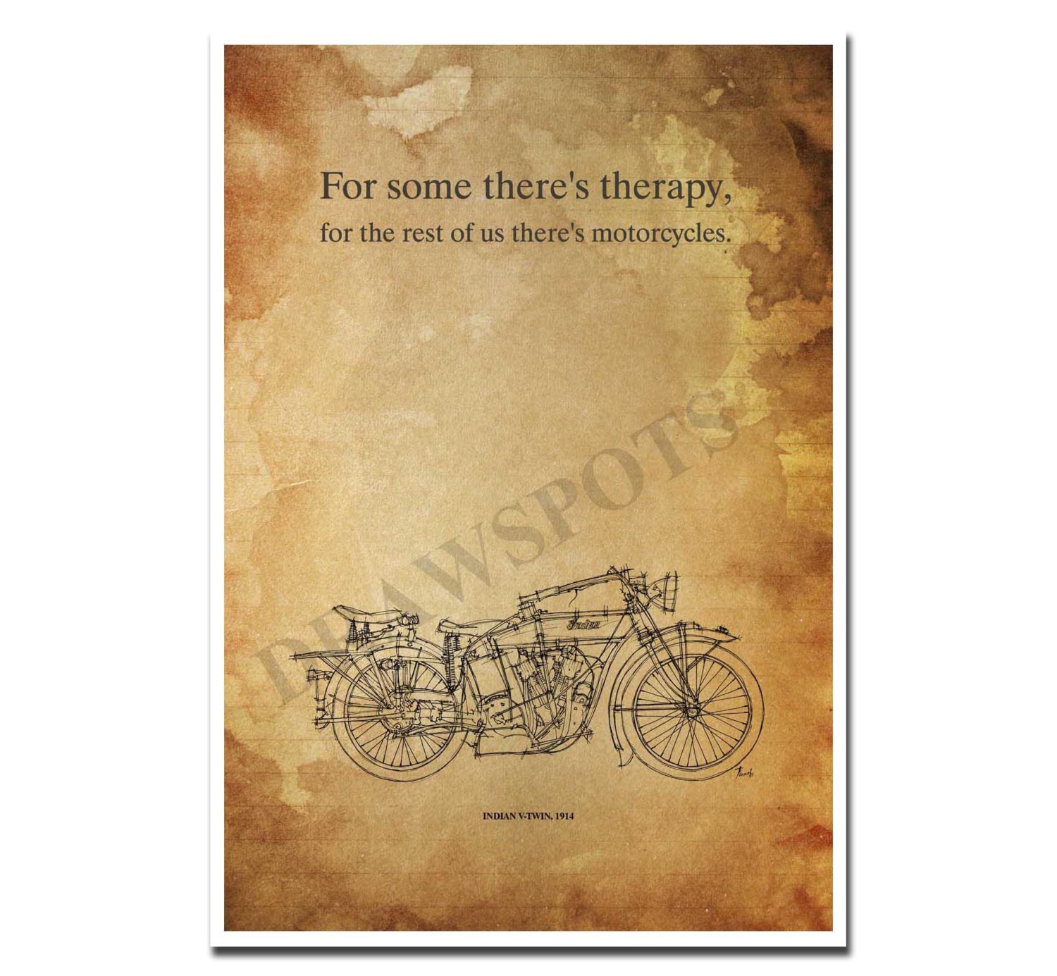 INDIAN V-TWIN 1914 quote "For some there's therapy, for the rest of us there's motorcycles" - 11.5x16, Price 42.00 USD (Listed on: January 27, 2015 at 04:16PM)