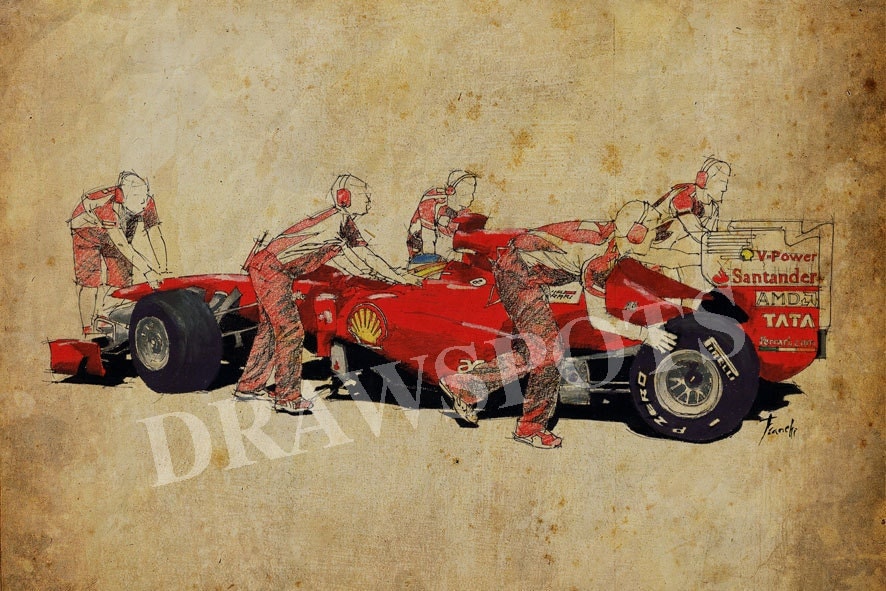 Ferrari a boxes 2, Art print, Original Handmade Drawing Print ,11.5x16 in., Price 42.00 USD (Listed on: April 22, 2015 at 09:47AM)