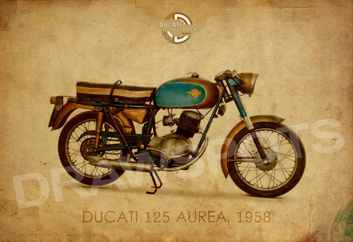 DUCATI 125 AUREA 1958, 14x10 in and more. trending home decor, trend art print, gift for men, Price 31.00 USD (Listed on: August 06, 2015 at 04:17PM)