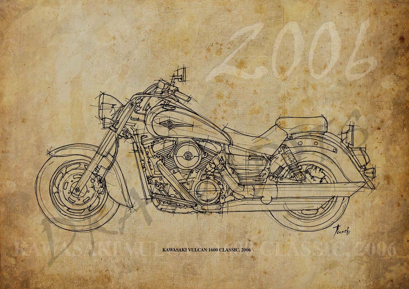KAWASAKI VULCAN 1600 CLASSIC 2006, Based on my Original Handmade Drawing, Art Print 8x11in and More Sizes, Price 29.00 USD (Listed on: August 06, 2015 at 09:18AM)